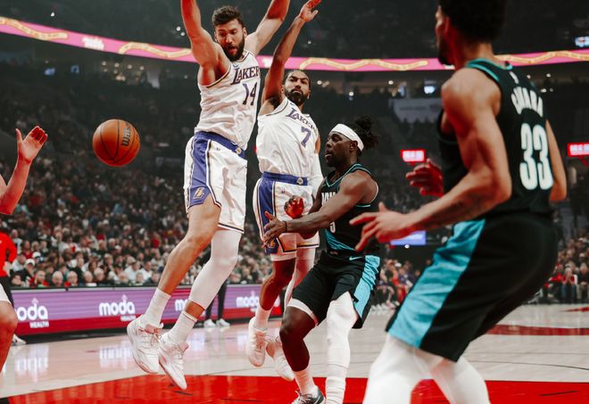 詹姆斯准三双,湖人惨败开拓者!杨瀚森3分钟1失误,湖人难守前六