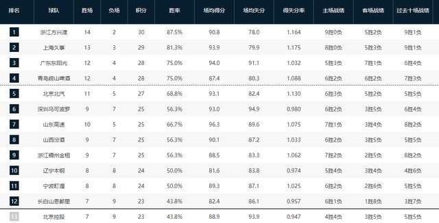 CBA排名又变天!上海连克劲敌杀回第2,广东第3,辽宁输球跌第10