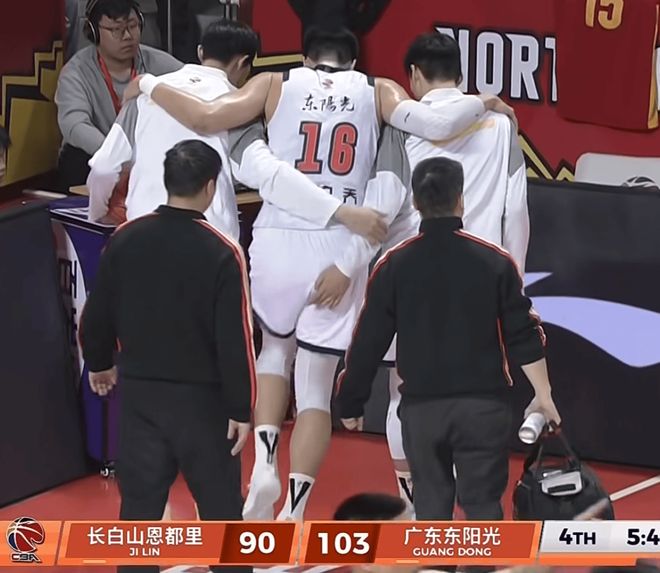 焦泊乔最近越打越好,有彻底打出来的趋势,本场比赛砍下11分7篮板,表现十分高效。正在他要打出来的时候,却在比赛第三节意外崴脚,只能在两名队友的搀扶下回到替补席上。不过这次而且出问题的不是他之前受过大伤的右腿,也算是不幸中的大幸!从焦泊乔受伤只是回到替补席接受队医治疗而非回到更衣室甚至直接去医院检查,可以得出他伤势问题不大的结论。事实上焦泊乔在比赛结束后还坚持一瘸一拐来到中圈和队友们一同庆祝,也和杜锋一起参加了赛后发布会。